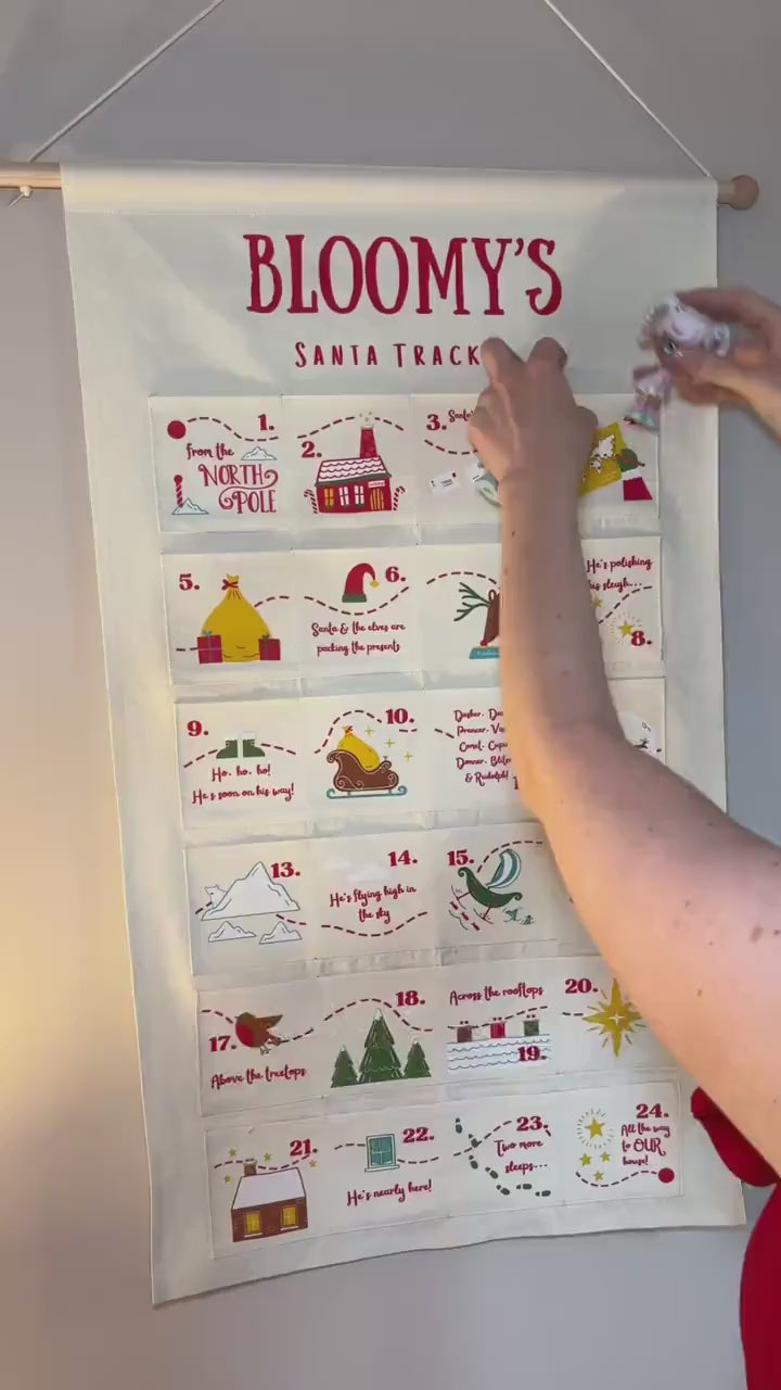 Custom Name Advent Calendar, Personalized Christmas Countdown, Fabric Wall Hanging, 24 Pockets, Kids Christmas Gift