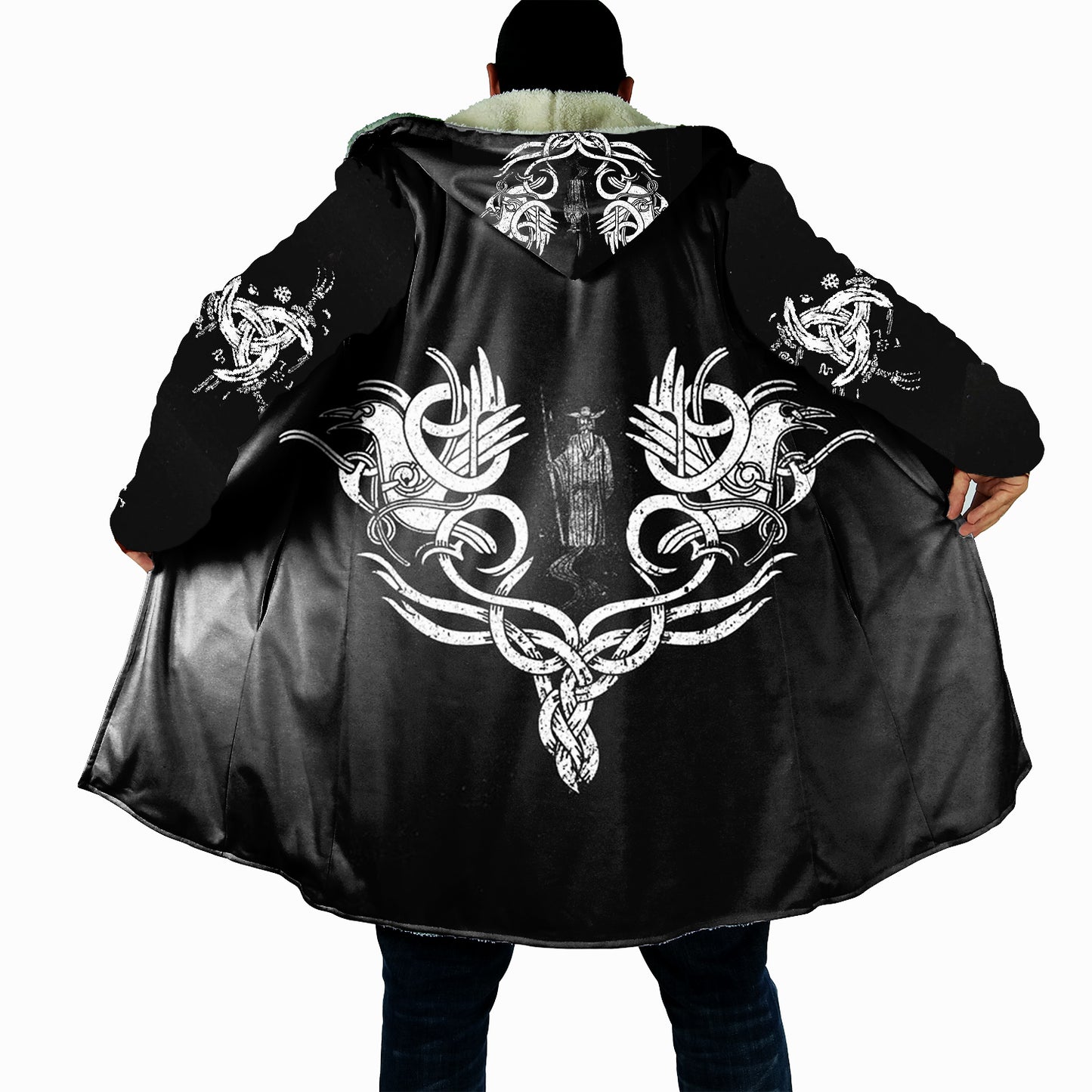 Viking Odin Cloak, Norse Celtic Knot Hooded Robe, Sherpa Fleece Warrior Cape, Nordic Mythology Blanket Hoodie for Men & Women